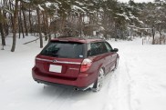 午前8時に峰山高原に到着。ここまでの雪道はアウトバックには余裕。スタッドレス+AWD+VDCの組み合わせは強力でした。横滑り防止装置を持たないFRのロードスターでは慎重な運転が要求されますがアウトバックでは雪道ですら楽しい。車の挙動が怪しくなってくるとVDCが警告音を出してくれます。車がスライドを始めても軽くカウンターを当てるだけで簡単に収まります。アウトバックなら一般的な雪道でハマることはないと思います。