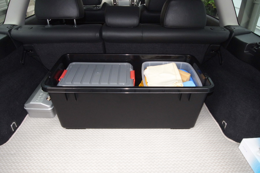 早速、洗車道具を詰め込んで洗車パッケージの完成です。飛ばした時にカーゴルームで荷物が暴れるのは嫌いですから荷物は極力まとめたい。雪山パッケージに続く二つ目のパッケージの完成です。