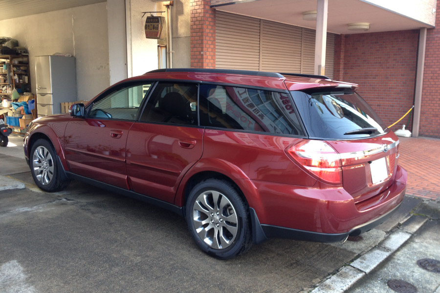 ダブル・コーティング完了!本日より6月。1日の朝を告げる7時のサイレントの音を聞きながらアウトバックを水洗い。車体に付着している黄砂を洗い流した後でポリラックによるコーティング作業。