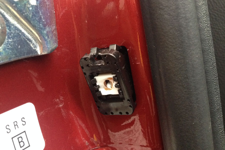 運転席のドアを閉める際にシートベルトのバックルを挟み込んで、ドアの開閉を検知するスイッチを壊してしまいました。