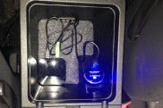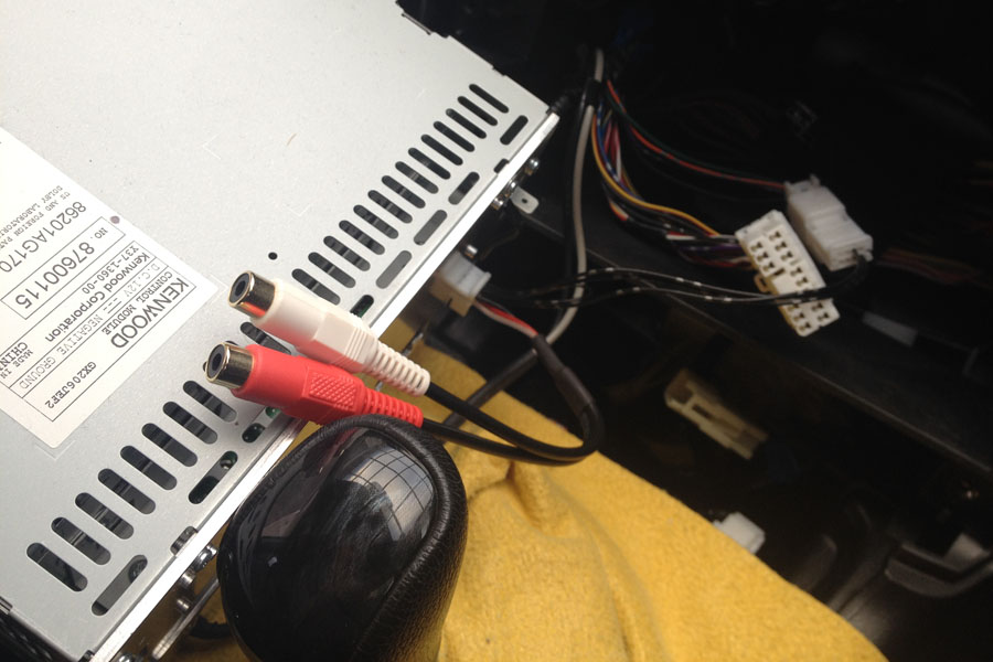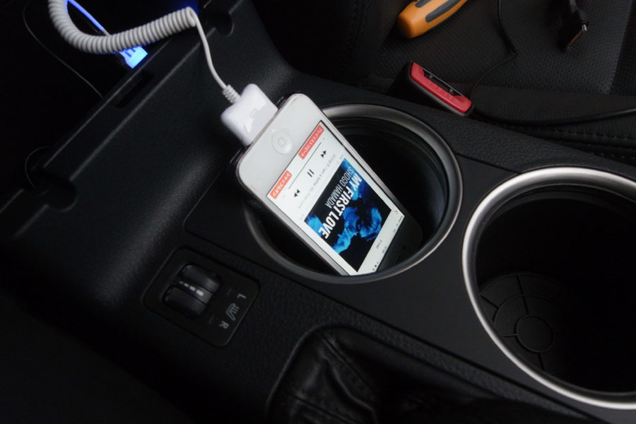 この手の製品の取り付けはお手のもの。アウトバックの内装をバラすのは初めてなので多少手間取りましたが、半日で作業を完了しました。ケーブル類は全て製品付属のものを流用。センターコンソール内に設置したPTM-BTR1の電源はシガーソケットUSBアダプターから取り出しています(下・写真中央)。