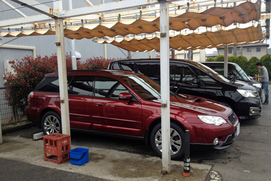 カーピカランド 市川橋日曜日の朝は曇り空の絶好の洗車日和。アウトバックが我が家に来てから2カ月、まだポリラックを使ったコーティングをしていません。