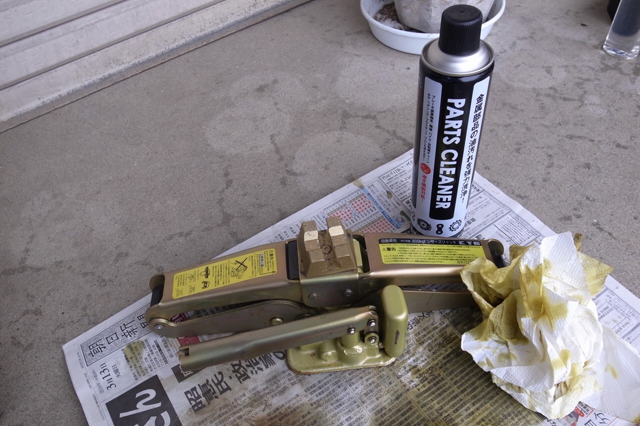 カヤバのシザーズジャッキを買ったのはロードスターに乗り始めた頃ですから15年ほど前。車高調を入れていた頃はよく使っていたのですが、最近はタイヤ交換で使うぐらいになってしまいました。